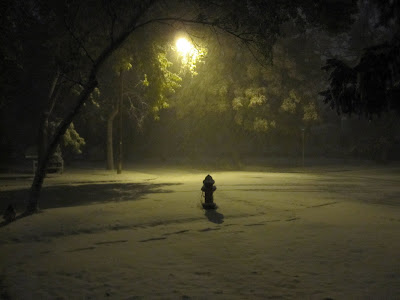 I am blessed to have a streetlight watching over my intersection each night. Besides the obvious saftey of having him around, he provides spectacular light for watching snow fall.